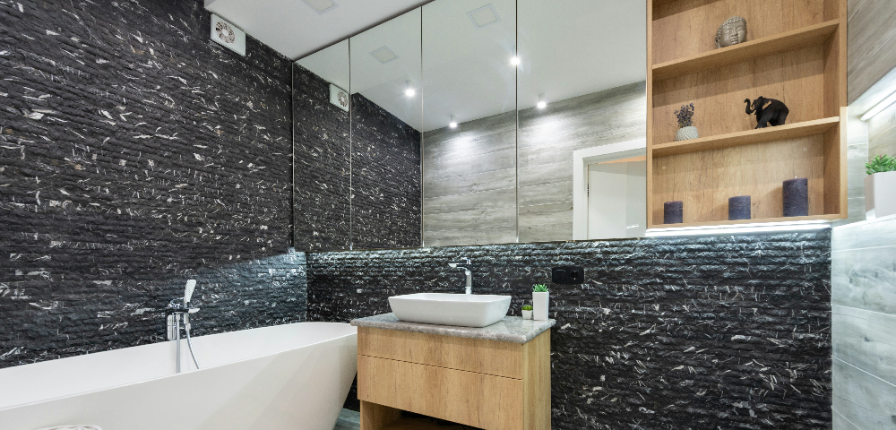 Opting for fixtures crafted from natural materials such as rattan, wicker, linen, or metallic pendant lights in the home decor provides illumination while parlaying as the room’s captivating pièce de résistance. Like in a cosy living room, a rattan pendant light, or a wicker floor lamp evokes a sense of warmth and earthiness, complementing a soft linen sofa and wooden coffee table. To create a sense of depth in the interior textures of the bathroom consider adding ceramic sconces, and metallic pendant lights, with brushed gold or matte black, to introduce a sleek vibe. The soft interplay of lights on the stone surface further enhances their earthiness.