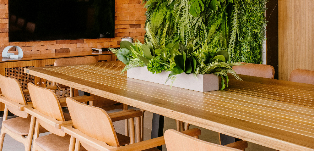 A live wall can further enhance the home’s design texture while infusing an exquisite pop of colour into the space. Ceramic and glass planters offer a delicate touch exhibiting nifty craftsmanship, while metal planters contrast strikingly against the lush greenery.