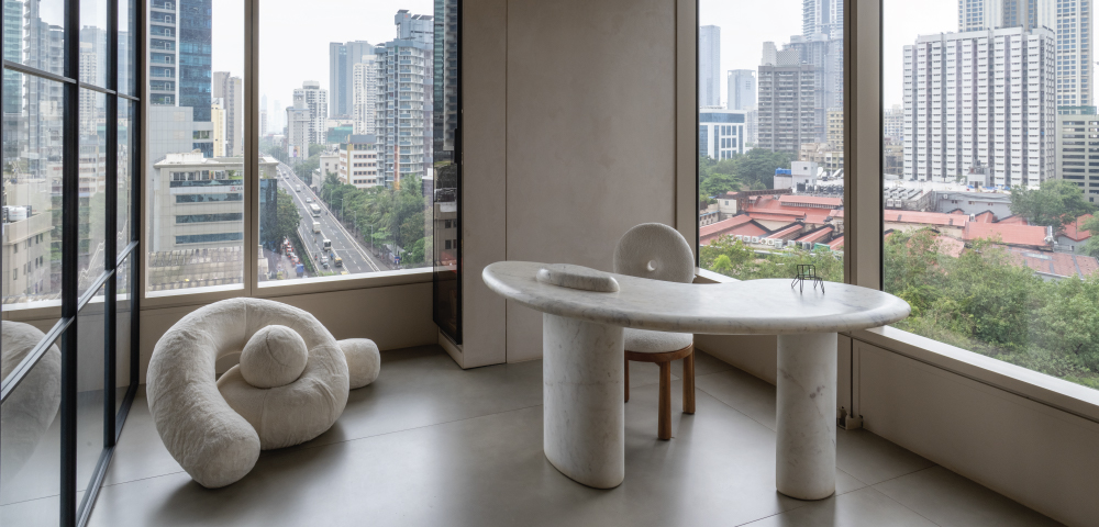 Through the clever use of glass, texture, and proportion, the designer duo has created a cheerful, human-centric workspace, far removed from the harsh glow of fluorescent offices. The infusion of Indian materials and handcrafted furniture adds warmth and tactility, grounding the space in local context while keeping its look modern, minimal, and artful.