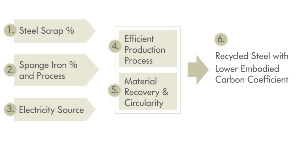 Figure 1: While assessing their steel supply chain the buyers can start insisting on information on these 6 parameters to drive demand for low carbon recycled steel