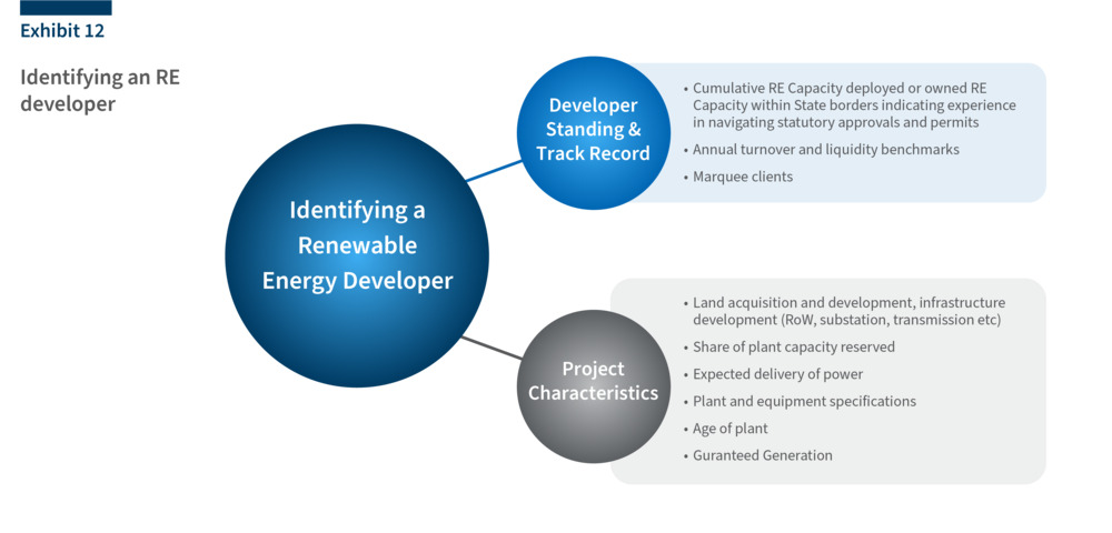 As RE assets have an operational life of 20-25 years, identifying the right RE developer is critical to ensure sustained performance of the assets over their lifetime. With growing demand for RE, the number of developers and their products are rising across India. However, identifying developers that align with the consumer’s requirements indicated in the previous section is vital. Exhibit 12 highlights the top decision variables that consumers can consider while identifying the right developer.