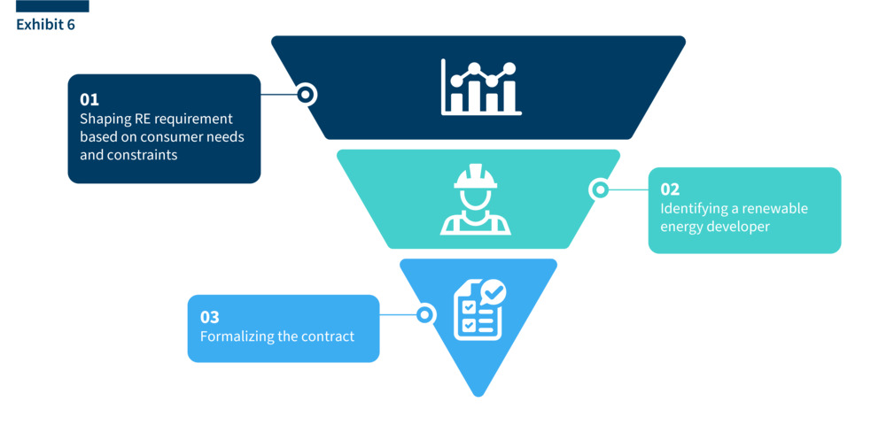 For consumers anticipating higher electricity demand in the future from the same site, it is recommended to consult with developers if additional RE capacity can be assigned for future demand (assuming state regulations permit multiple RE assets for the same site). Given the multiple criteria that consumers need to consider when identifying the developer, developing detailed bid documents and inviting multiple developers to participate for bidding can help identify the ideal developer.