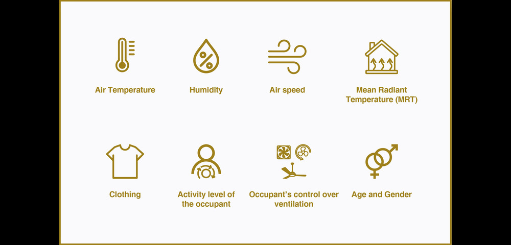 Under the net zero urban accelerator launched by Lodha in partnership with RMI India Foundation, Lodha has set a goal of providing thermal comfort to a million people with minimal need for air conditioning, thereby expanding comfort access to a broader set of customers. To achieve the desired goal, various passive strategies such as shading, efficient glass and building materials, high SRI paint, radiant cooling, solar chimney and low energy cooling technologies such as ceiling fans have been identified, and various experiments to establish the impact of identified interventions on thermal comfort and the energy consumption is currently underway. Here we are decoding all the layers that define thermal comfort, as shown in the diagram below: