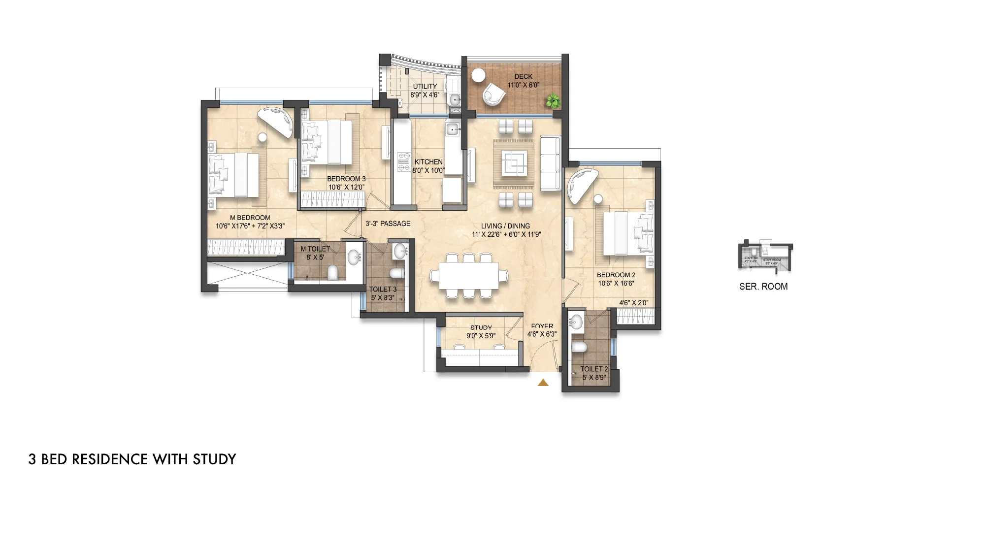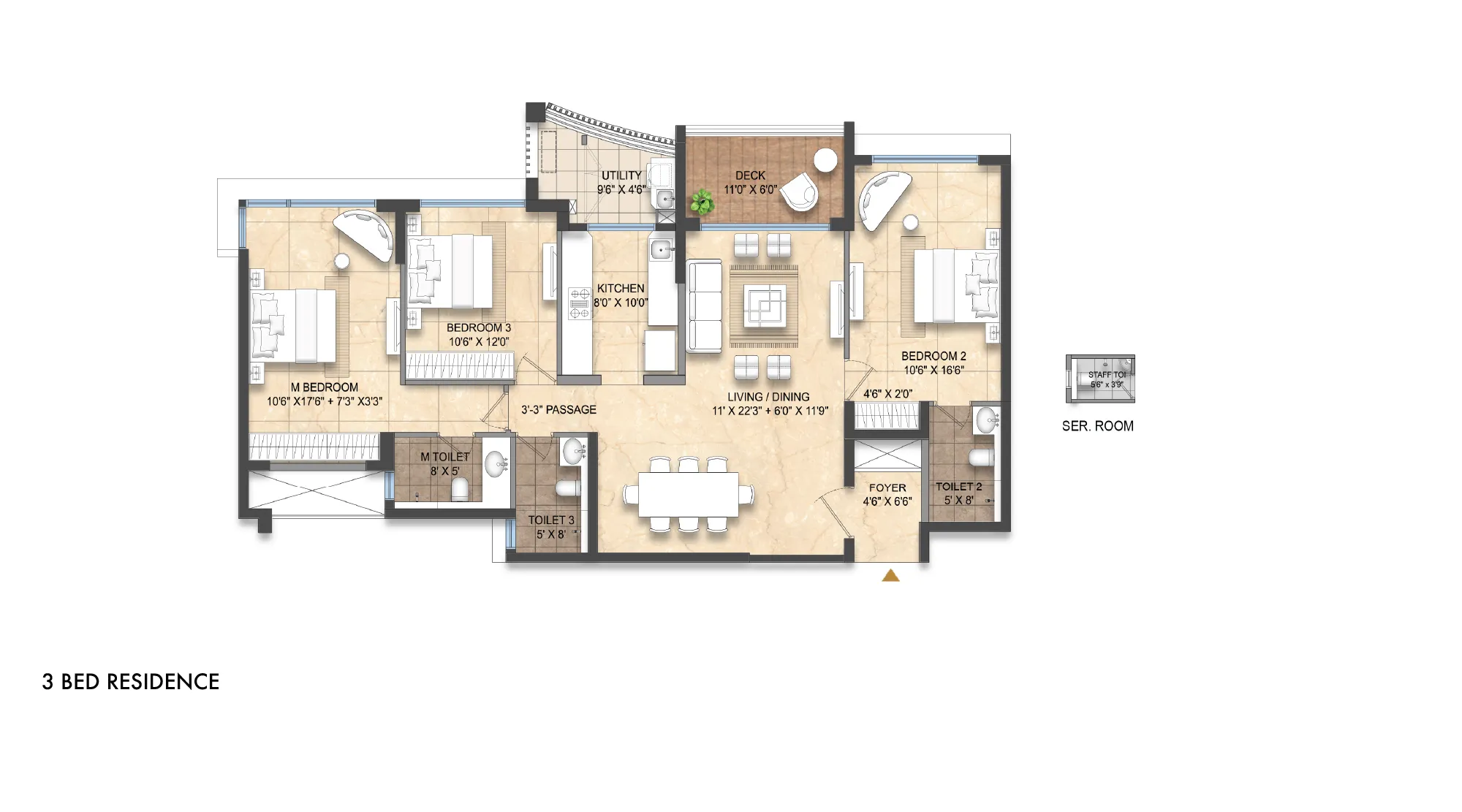 Thoughtfully and spaciously designed homes, with virtually zero wastage in passages, and abundant room for an elevated life. Lavish sundecks and full-height windows allow inhabitants to soak in the shimmering sea and verdant garden views. From the caressing touch of luxury marble on your feet to engaging with designer fitments and finishes in washrooms, you will discover finesse at every turn and corner.