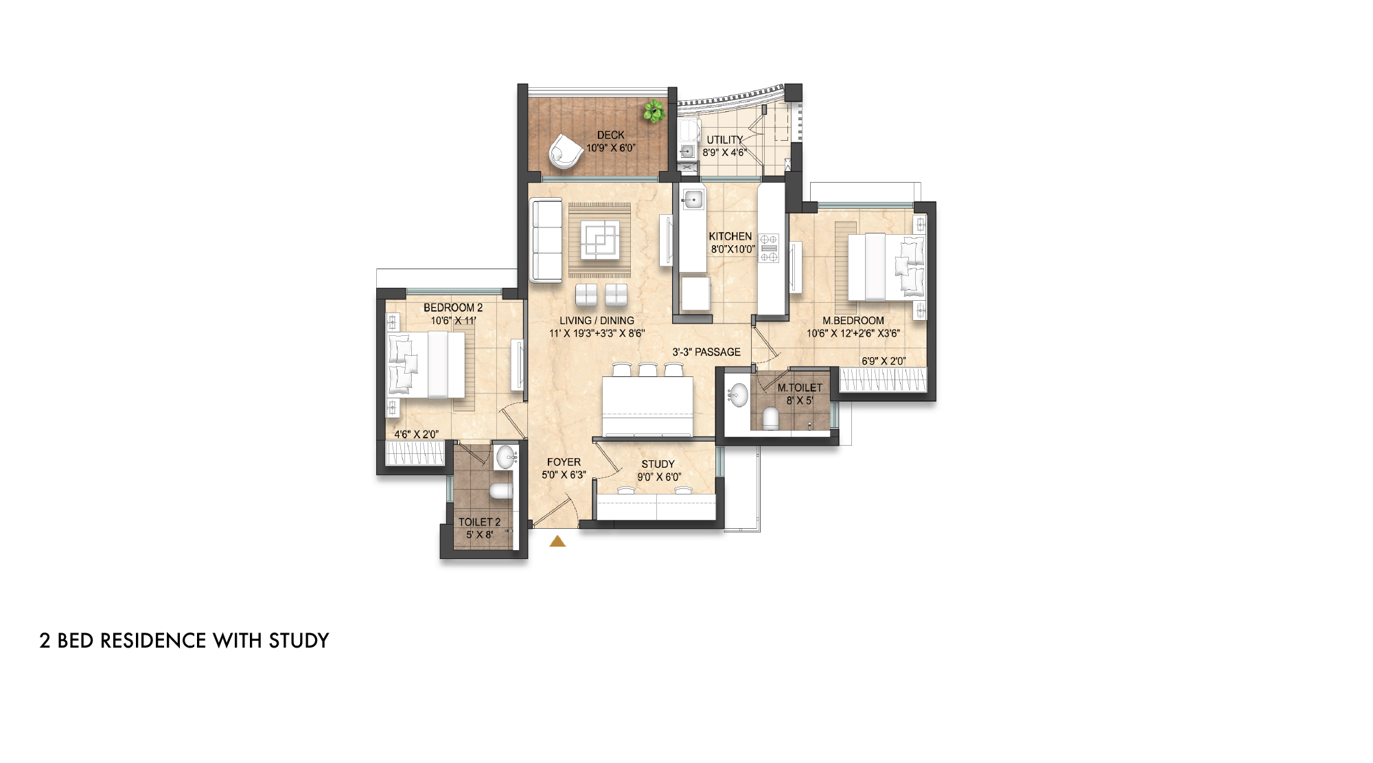 2 Bed Residence with Study