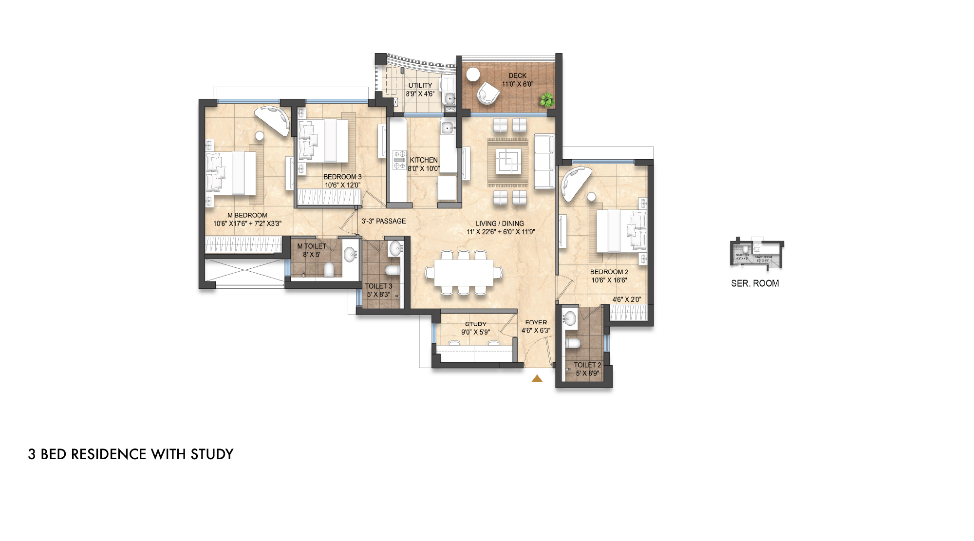 3 Bed Residence with Study