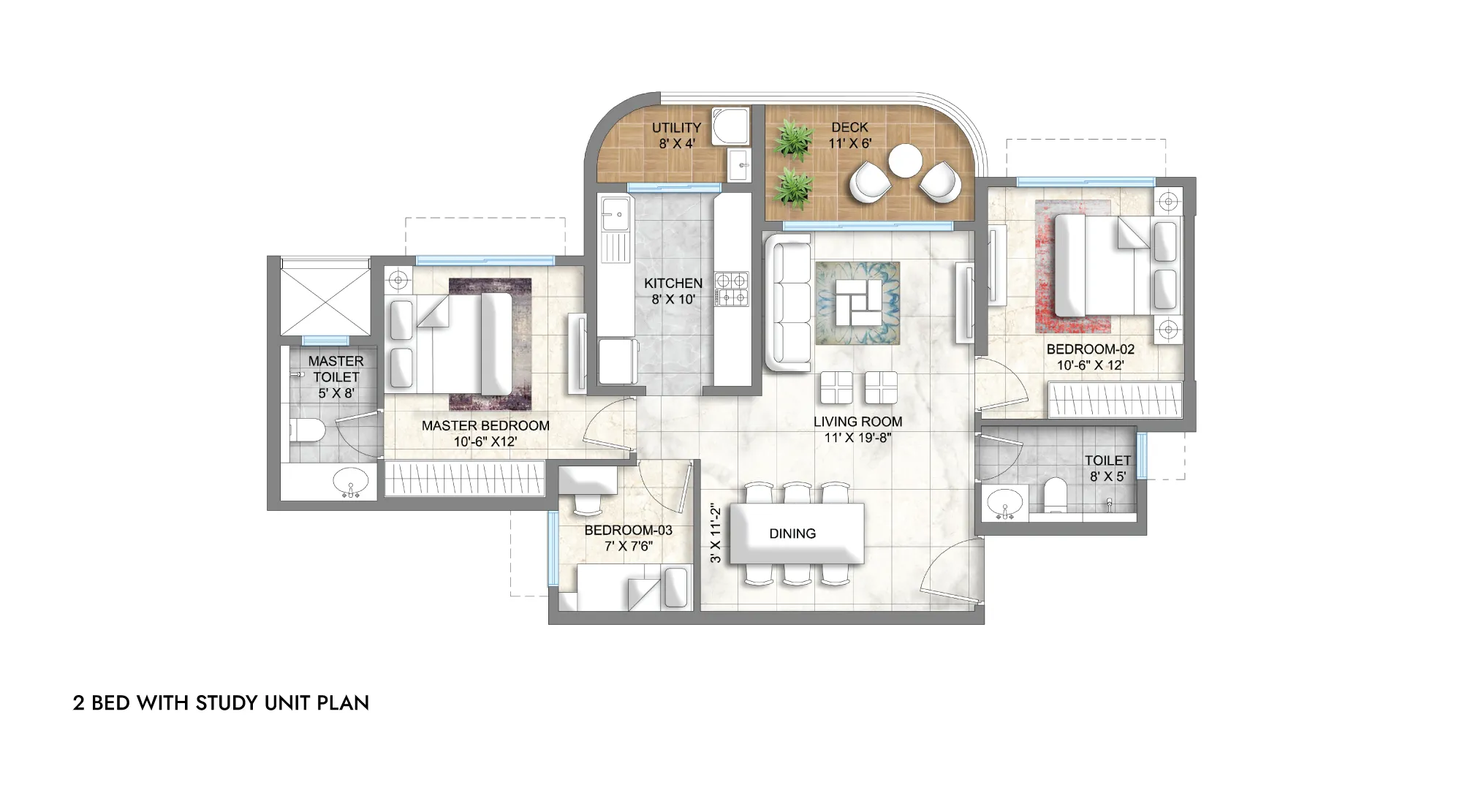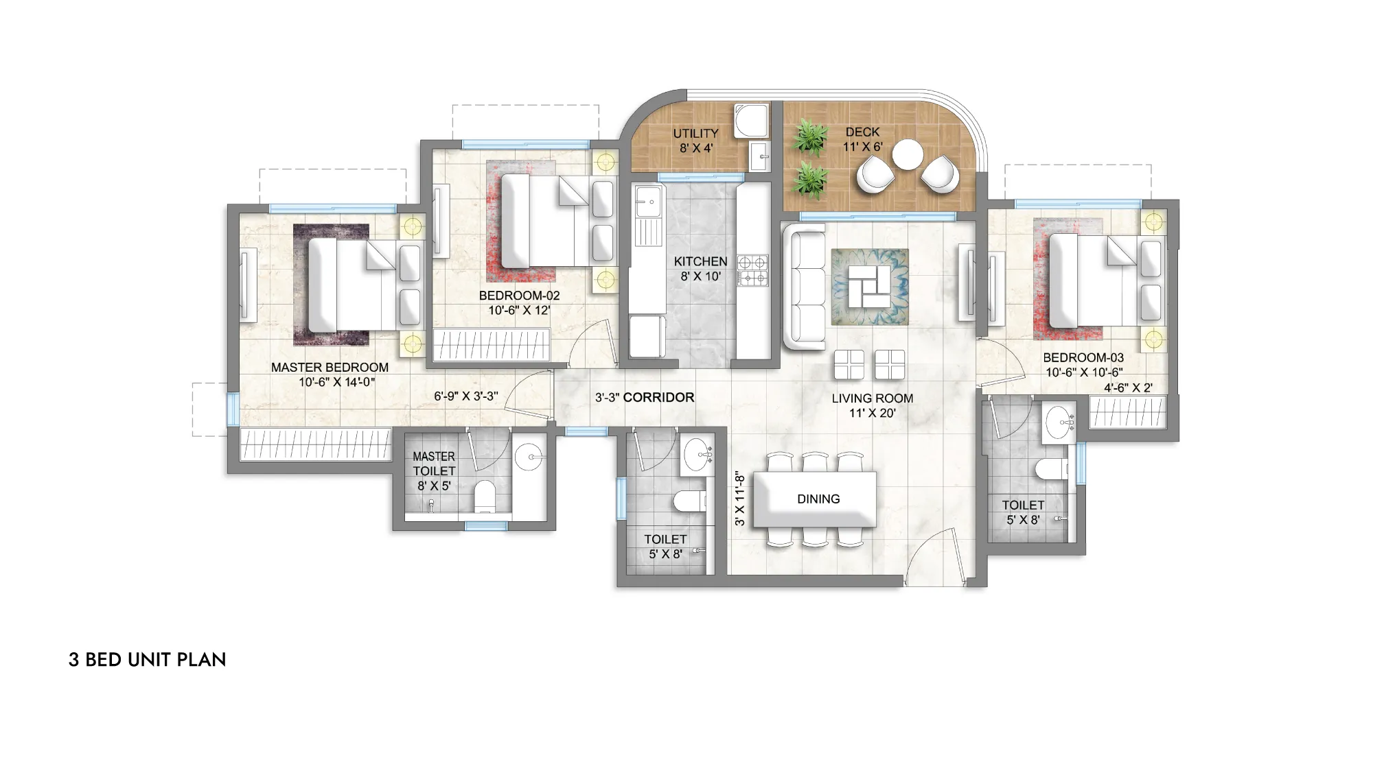 Sprawling residences with grand sundecks and tall windows with stunning vistas of the Vihar Lake, Yeoor Hills and surrounding greens. Your gilded decks also provide clear views of central greens and the Powai Lake.